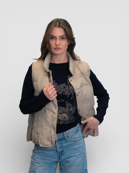 Бежов капитониран елек със столче яка