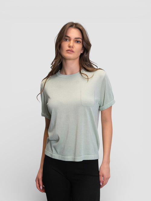 Блестяща тениска в цвят „Мента“ с джоб и подвити ръкави